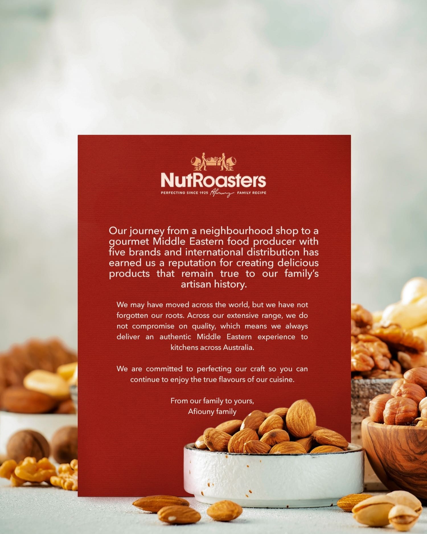 When NutRoasters had the ambitious goal of going from a humble family shop to taking over Australia’s biggest grocers, there was no doubt their range of high quality products would achieve the extraordinary. But to help facilitate this evolution, we set out to revamp their brand to bring forth a sophistication that was on par with their offering. With a complete overhaul of their digital presence, we built a website and online catalogue, that together with professional food styling and photography, showcased the heart of NutRoasters with an exciting new style.
